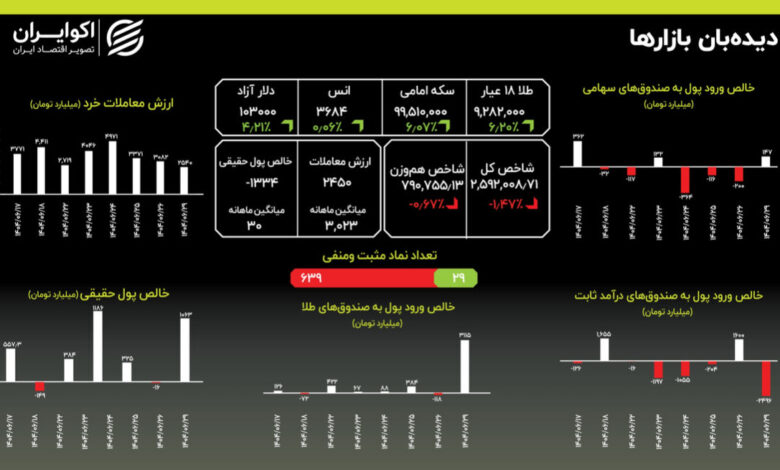 امروز در حالی که بورس تهران با خروج تاریخی ۱۳۳۴ میلیارد تومان نقدینگی مواجه شد، صندوق‌های طلا پذیرای ورود حیرت‌انگیز ۳۱۱۵ میلیارد تومان سرمایه بودند. این جابجایی عظیم سرمایه همزمان با جهش انفجاری قیمت طلا، سکه و عبور دلار از مرز روانی ۱۰۰ هزار تومان رخ داد که نشان از یک تغییر پارادایم در ترجیحات سرمایه‌گذاری بازار ایران دارد.
